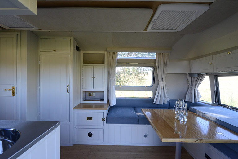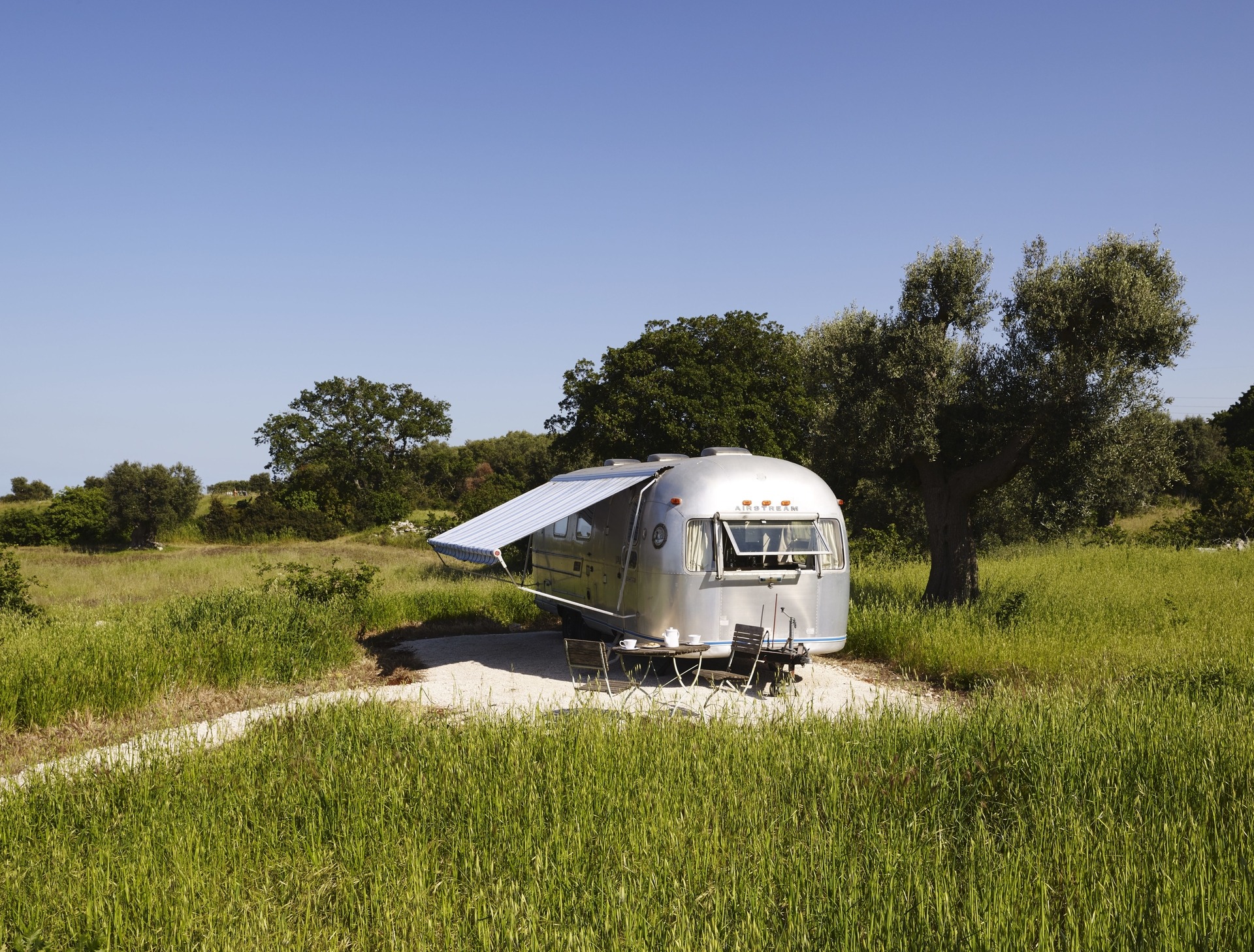 Restaurato per oltre 5 anni da un ex costruttore di barche nel Devon e portato in Puglia dal proprietario, l’Airstream è stato completamente modernizzato e ha ricevuto lo stesso trattamento di interni della Masseria.