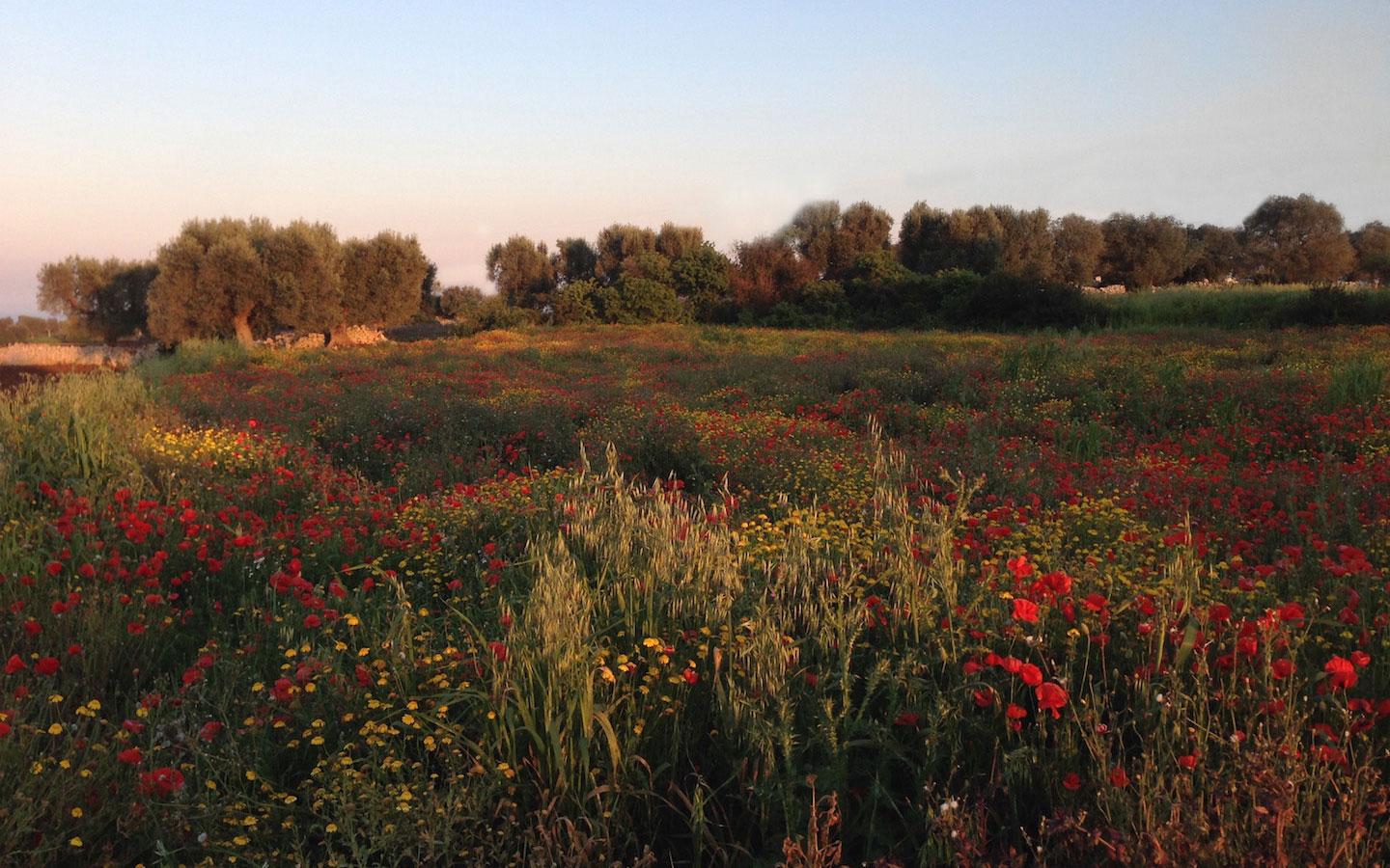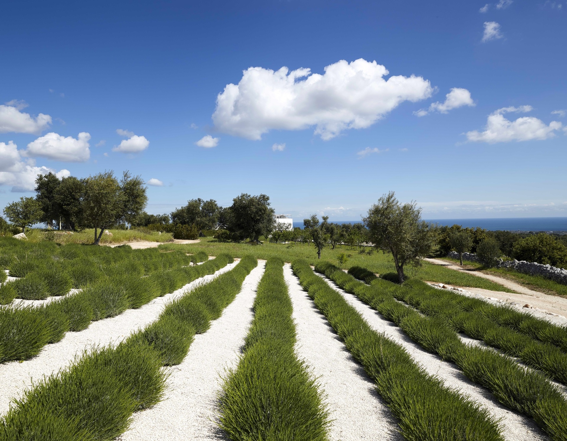 La Masseria si trova in alto sulla terra, circondata da antichi uliveti, campi di grano e prati fioriti.